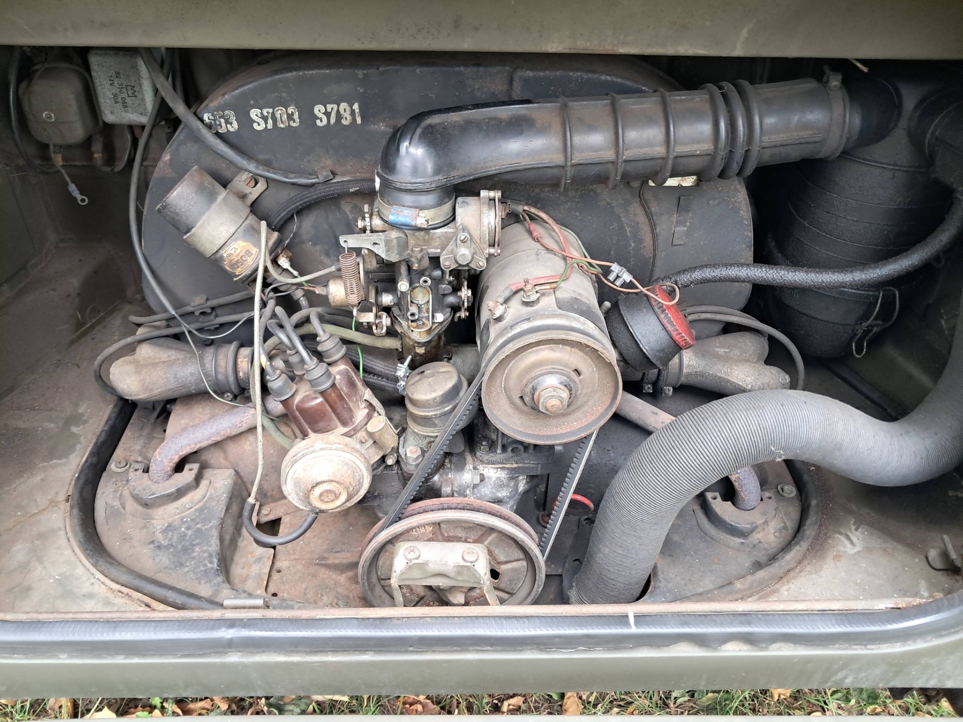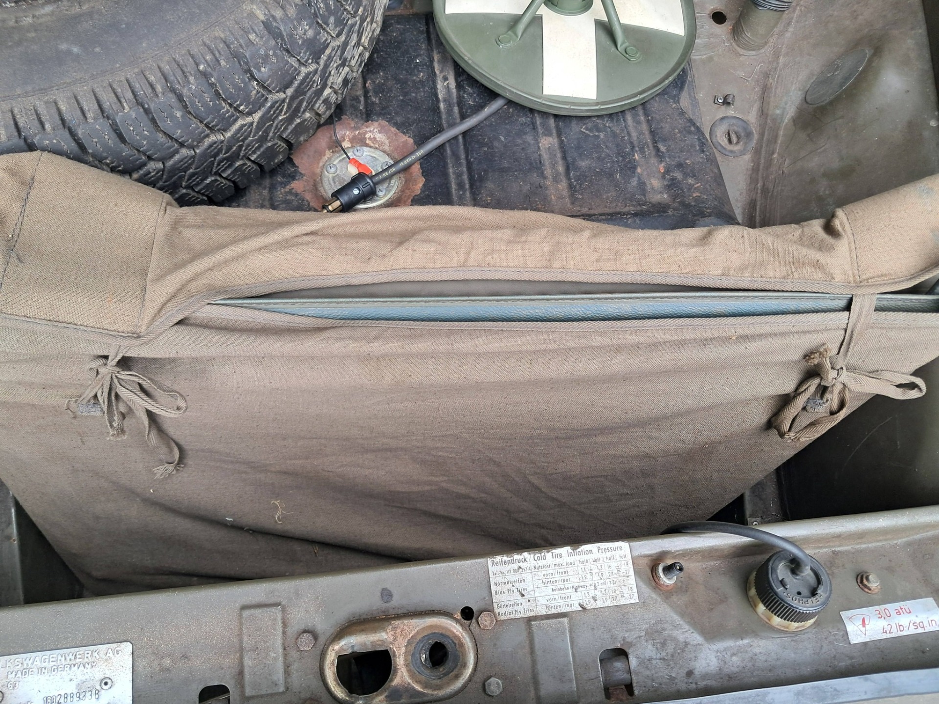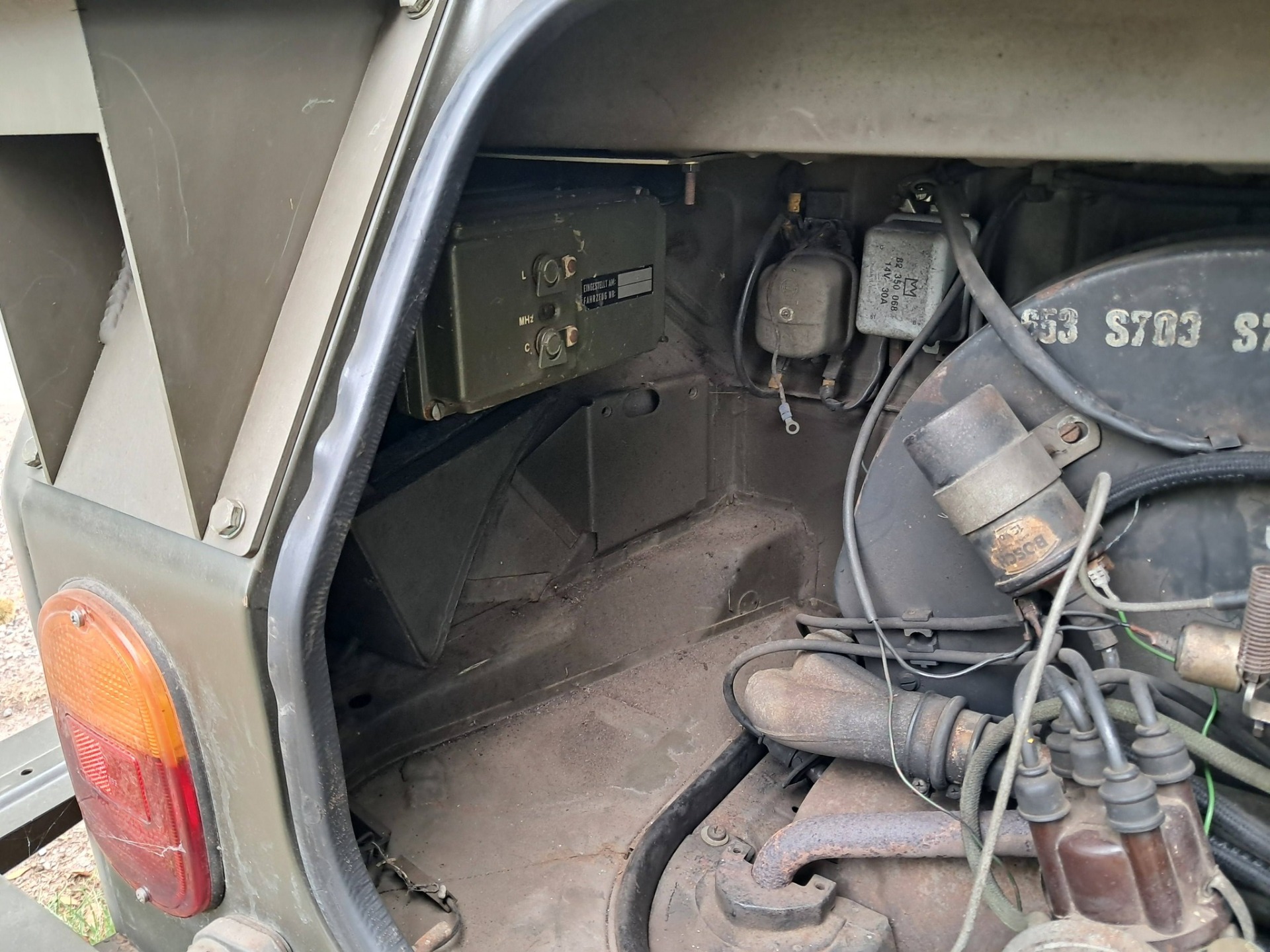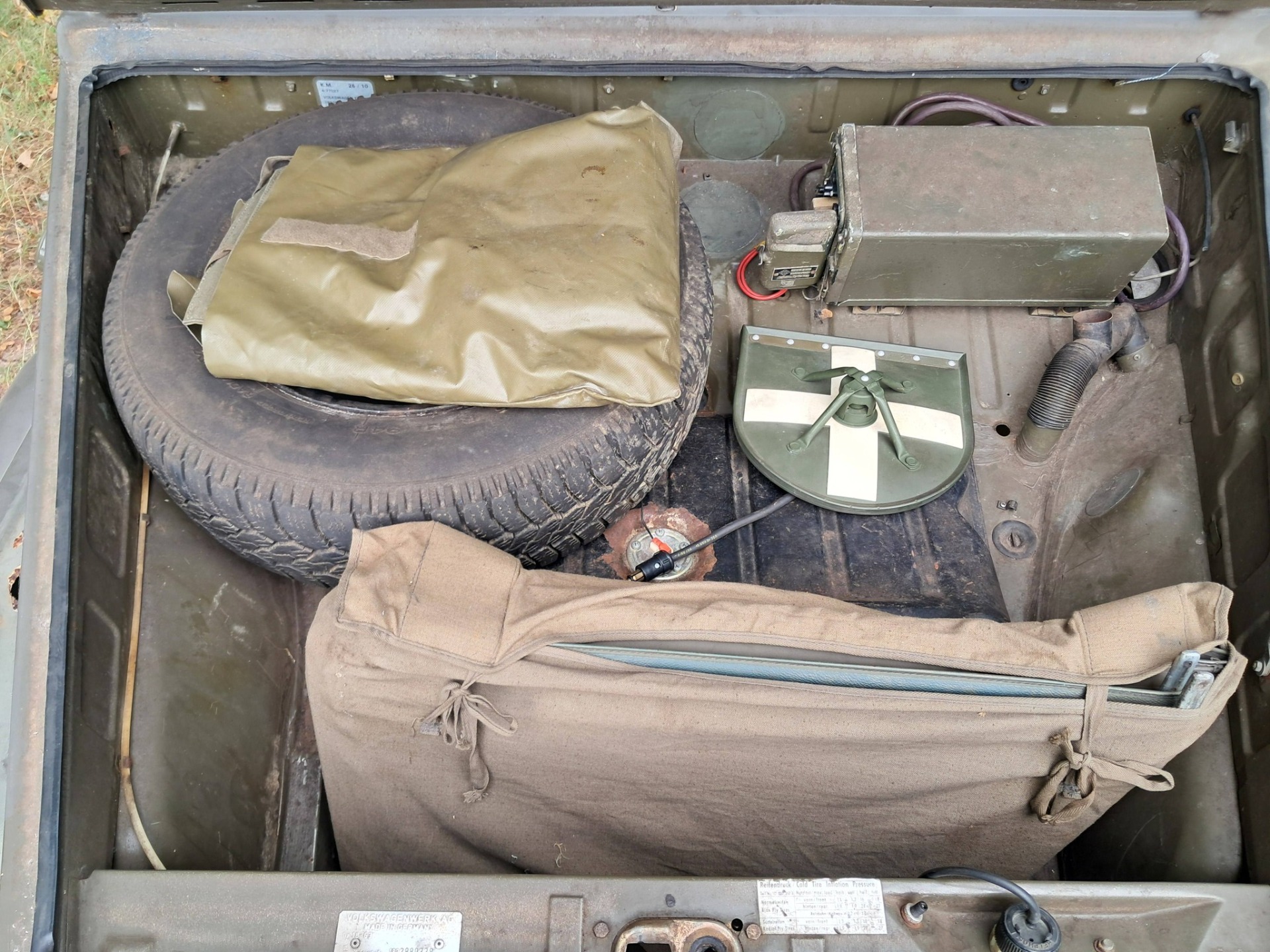 VW 181 kubel radio wagen. Originele conditie met de volledige radio uitrusting, alle moeilijk te vinden accessoires zijn aanwezig. Originele militaire radio. Kas en vloer zijn originele conditie met klein reparatie 's in het verleden. Voorspadborden hebben beetje werk maar zijn nog originele lak. We hebben er zelf enkele jaren mee gereden zonder probleem. 1600 motor die vlot in verkeer gaat. Alle accessoires worden bij de wagen geleverd.